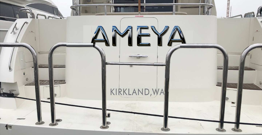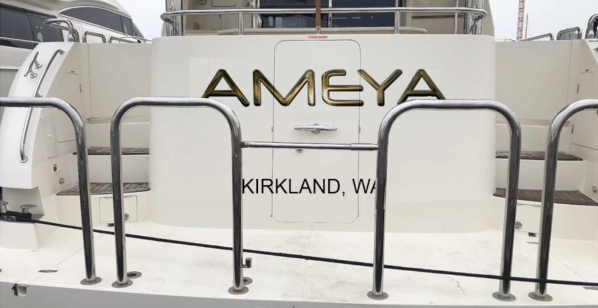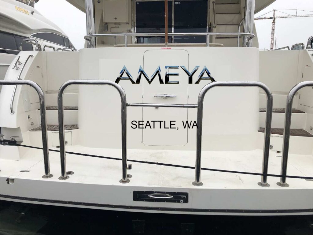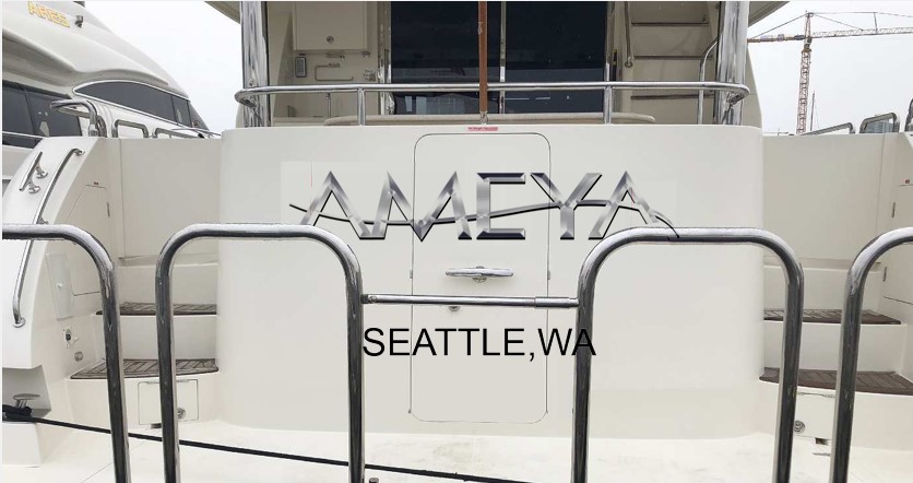 A variety of treatments depicting vinyl prints which look like chrome or metal letters. Various sizes and positions on the transom for your consideration.