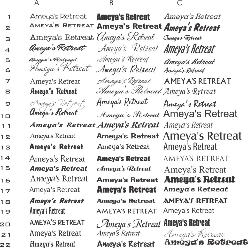 I always start with a type study and flip through my font library for styles that seem to fit requirements. I’ve chosen my favorites and show them below with a variety of colors and treatments. Let me know if you’d like to see some other typefaces in the mix.