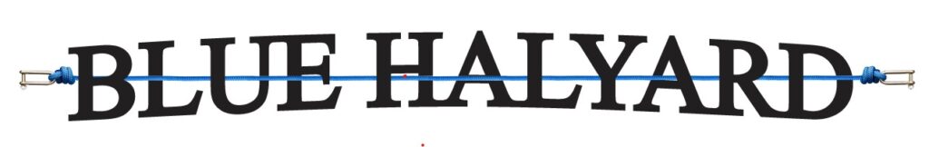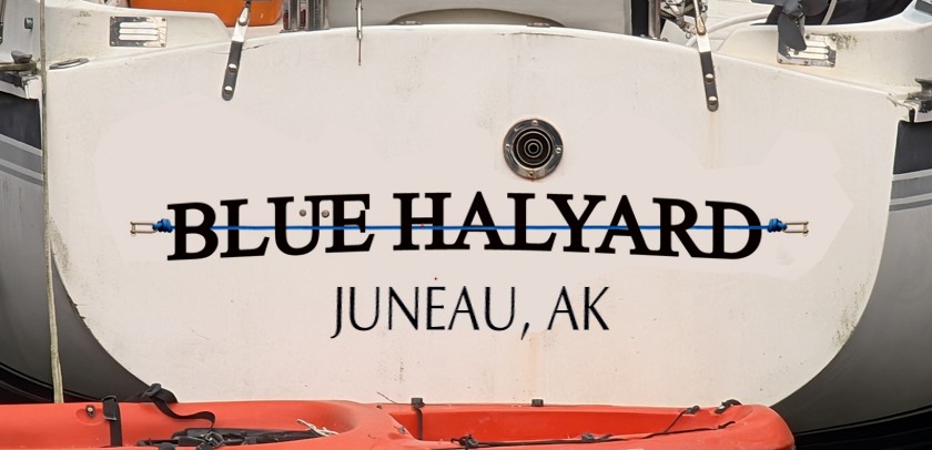 I created a version of your concept with the thin blue line in a resolution that is high enough to work at this scale on the transom.
