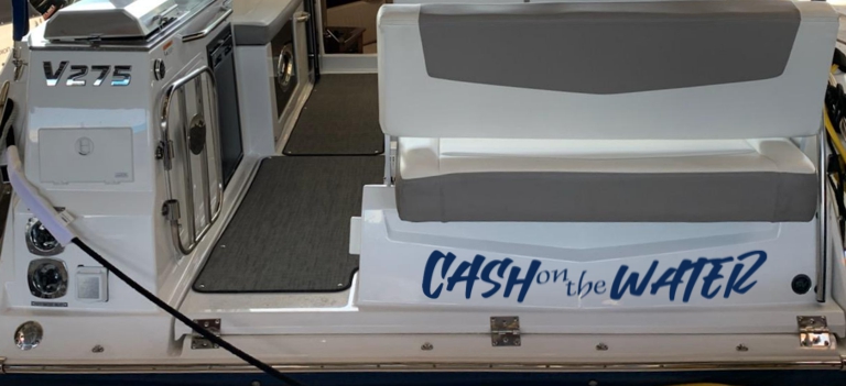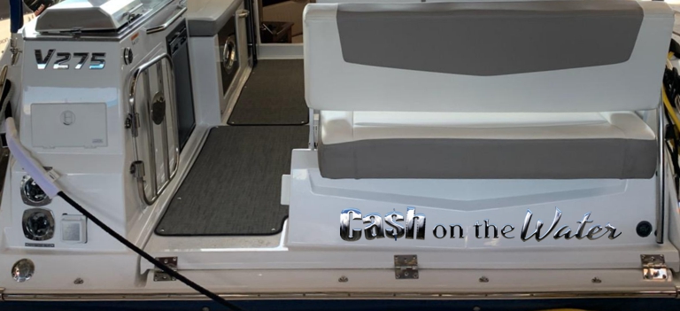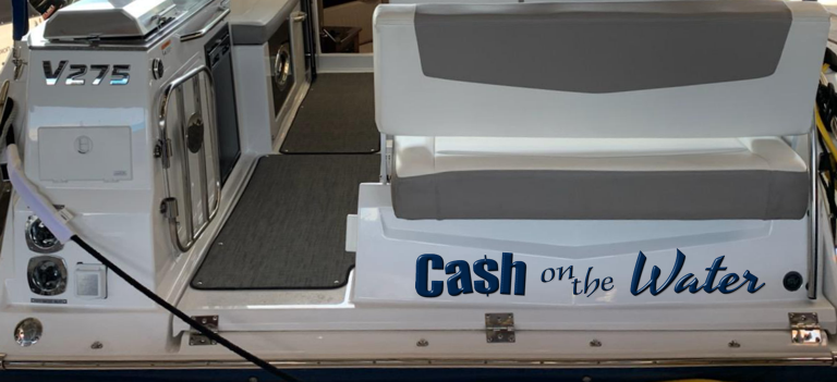 Who can guess why these folks named their boat “Cash on the Water”? Is it A. The Investment Enthusiast, B. The Dream of the Fisherman or C. Musical Mishief?