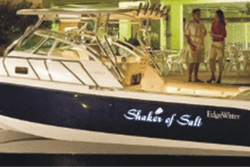A very nice looking effect on a black background, right? Creating custom boat graphics like this is simple. We print on white to blend into your hull color.
