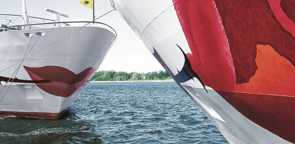Hot lips on a cruise shipStriping design on cruise shipBritish flag design on shipColor bow graphics for this shipDistinctive boat graphicsSwan wing bow designColorful graphic reflections on this shipHot lips bow graphicsCruise ship striping designSimple clean lines on these boat graphicsNorwegian Epic colorful boat stripesPearly stripes for the Norwegian PearlFlower bow design streaming backSunny striped boat graphicPeter Max boat graphicsEagle stripe design for port and starboard graphicsPrincess Cruises hair flowing back bow graphicsRose streaming back from hotlips on bowWarner Brothers boat graphicWyland cruise ship bow graphics