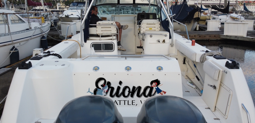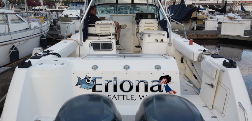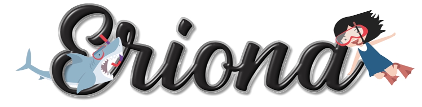Eriona Boat Graphics Studio 1. black bevel with silver outline and characters with swim masks 1. hull preview on transom 2. baby shark and little mermaid with dark hair 2. hull preview 3. favorite shark and girl with chrome style lettering 3. hull preview