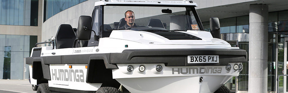 Capable of highway speeds on land and speeds in excess of 30mph on water, the 4wd Humdinga transitions between land and water in seconds.