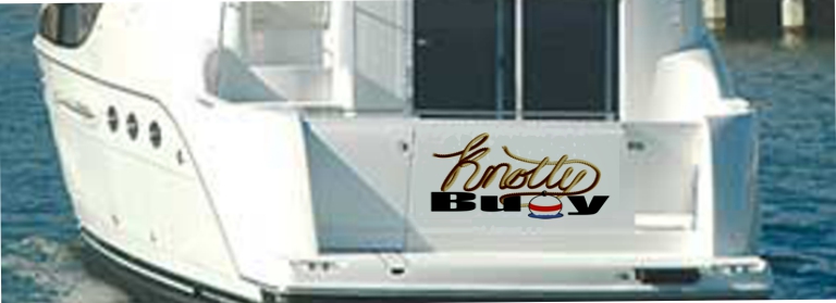 Boat lettering for the “Knotty Buoy” using both a buoy and rope with knots. These boat graphics are displayed in reverse because the latest iteration is posted to the top of the screen. We Started with the first four boat graphics, which vary is context. The next four following boat lettering examples were based off the customer’s favorite choice, number 1, which used rope lettering for the entire word “Knotty.”