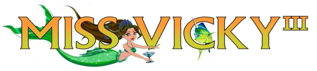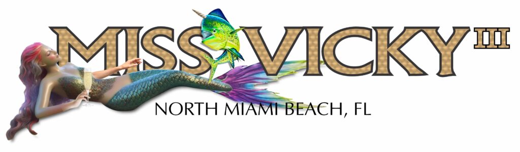 6. Mahi between Vicky and III5. Larger mahi, silver crown, gray drop shadow4. Brown hair smaller dolphin fish, port off center3. green body with martini1. close up rough draft1. mermaid with champagne and bull dolphin/unicorn. Gold foil or leaf lettering with black outline.2. black script with gold foil outline. fish swimming through V