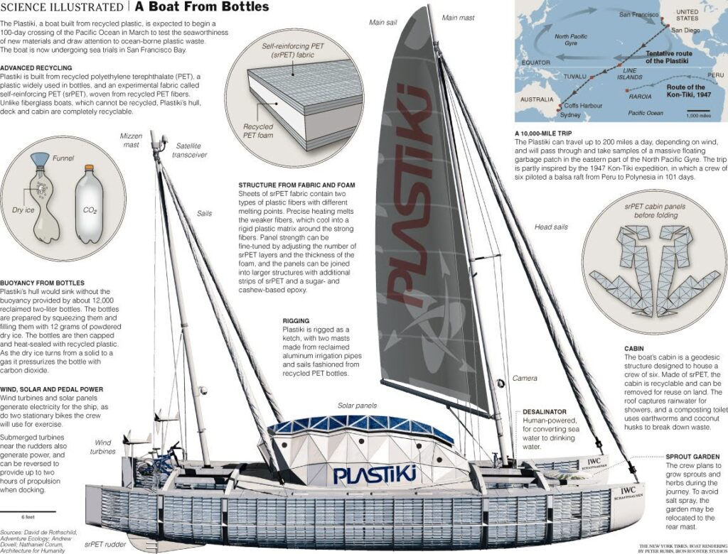 The Plastiki boat graphics reflect a modern name for a modern issue – the not so “Great” Pacific Garbage Patch.