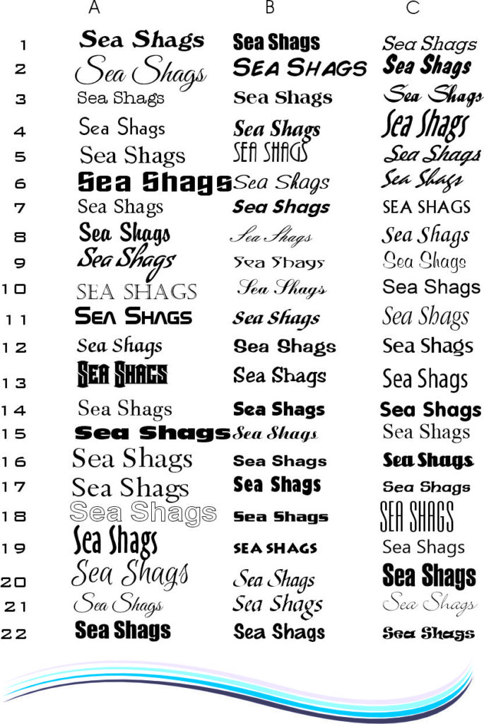 Conducting a type study not only showcases the potential of various letters and shapes but also highlights the importance of identifying what doesn’t work well. This is just as crucial as selecting your preferred options during the initial drafting stage. If you’re interested, I can provide you with examples of boat lettering concepts incorporating the alternative styles depicted above. I start with my favorites as seen above.