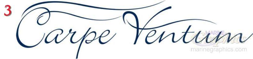 In this vinyl boat lettering case study, we explore various positions around the coving stripe. Traditionally, many sailboat boat names are placed inline, not above or below this stripe.
