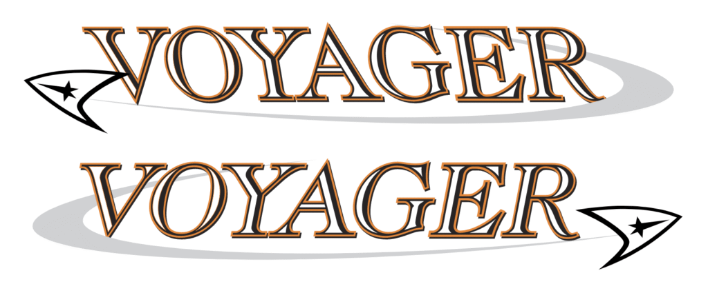 8. swoosh behind the V and silver star8 hul preview with name centered differently7. swooping through the O7. hull preview6. arc with only the star from the emblem6. hull preview best fit with the Y lining up with the door5. a variation on 4 with directional graphics for port and starboard bow5. hull preview on port side.4. larger symbol, white bevels on the Caslon4. hull preview3. Live long and prosper with gold bevels on the Caslon3. hull preview with smaller swoosh off the hinge.2. Caslon with gold bevel 2. hull preview1. original logo gold face with black dropped shadow1. hull preview