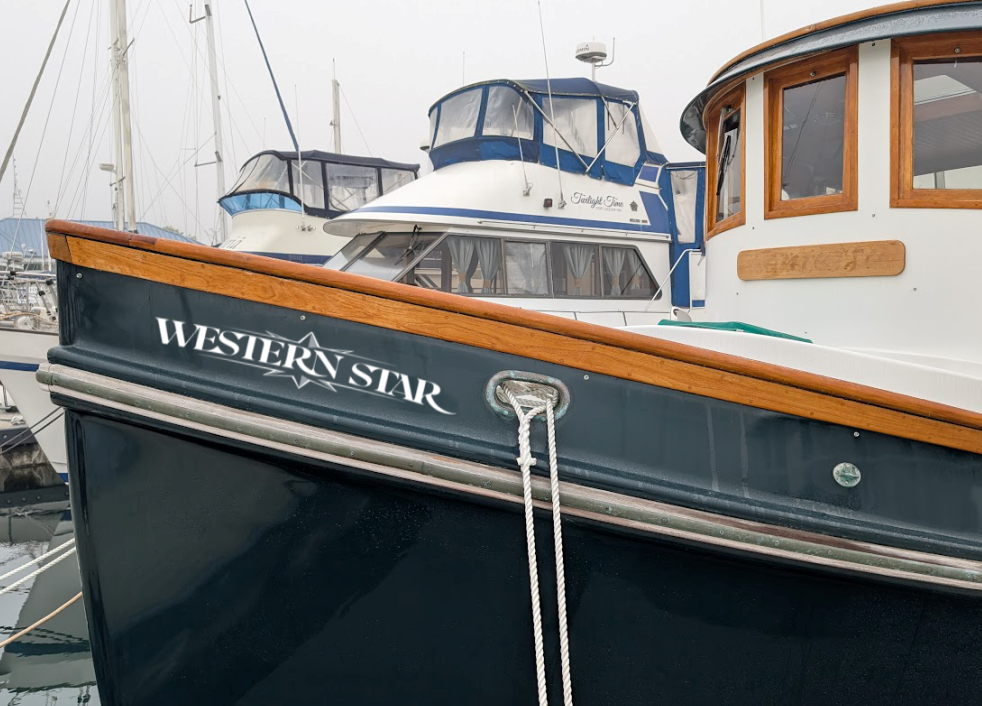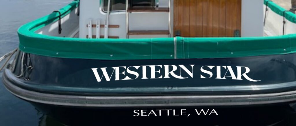Check out more ideas below and let me know if you like one of these right off the bat, we can schedule an install during your San Juan County shakedown cruise. I’ve used whites and silver grays for contrast but gold looks good with green too. Let me know if you want to see digital print versions with bevel effects as well.